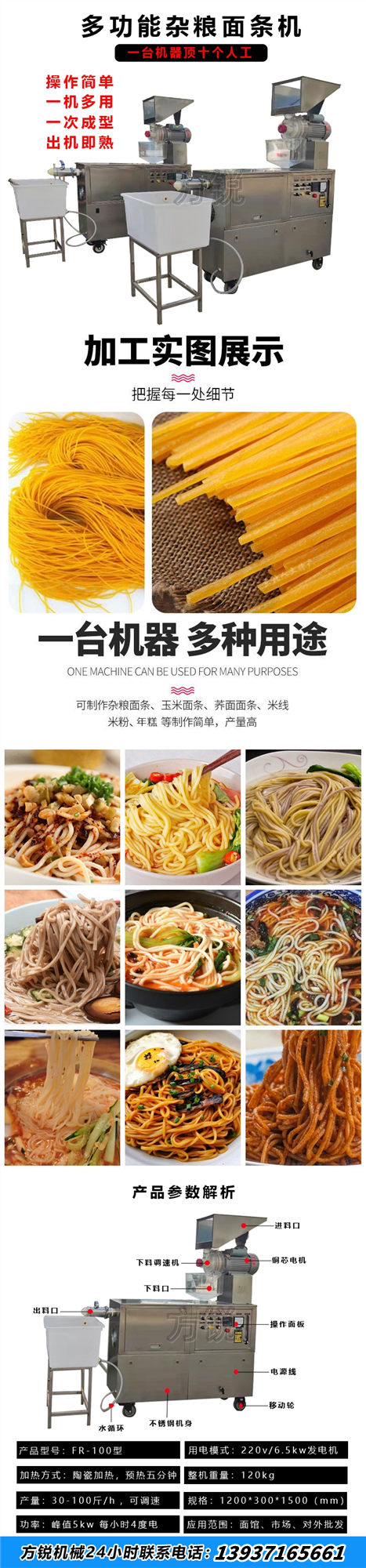 方銳多功能雜糧面條機(jī)操作簡單,一機(jī)多用,一次成型,出機(jī)即熟!可制作雜糧面條、玉米面條、蕎麥面、米線、米粉 、年糕等多種美食,省時省力,產(chǎn)量高,一臺機(jī)器頂十個人工。